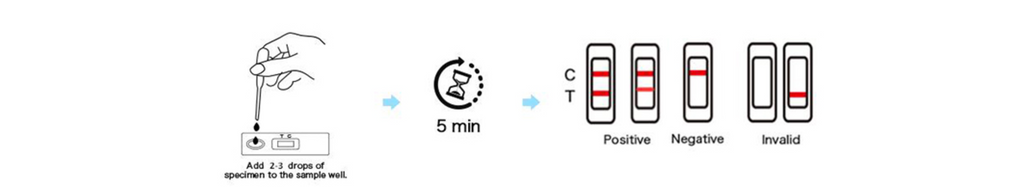 Wait for red colored bands to appear. The test should be read in approximately 5 minutes. Do not interpret results after 5 minutes.